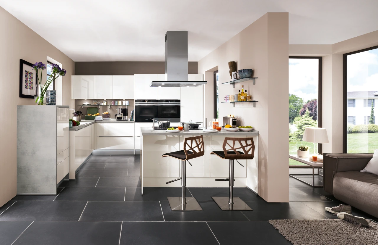 Diese Küchenplanung vermittelt ein modernes Küchenfeeling zum Wohlfühlen. Grifflos geplant, überzeugt sie durch ihre ausgeprägte Flächenruhe. Auffällig und dezent zugleich integriert sich diese Küche perfekt im angrenzenden Wohnraum.