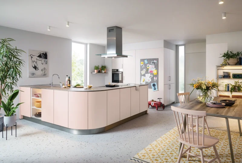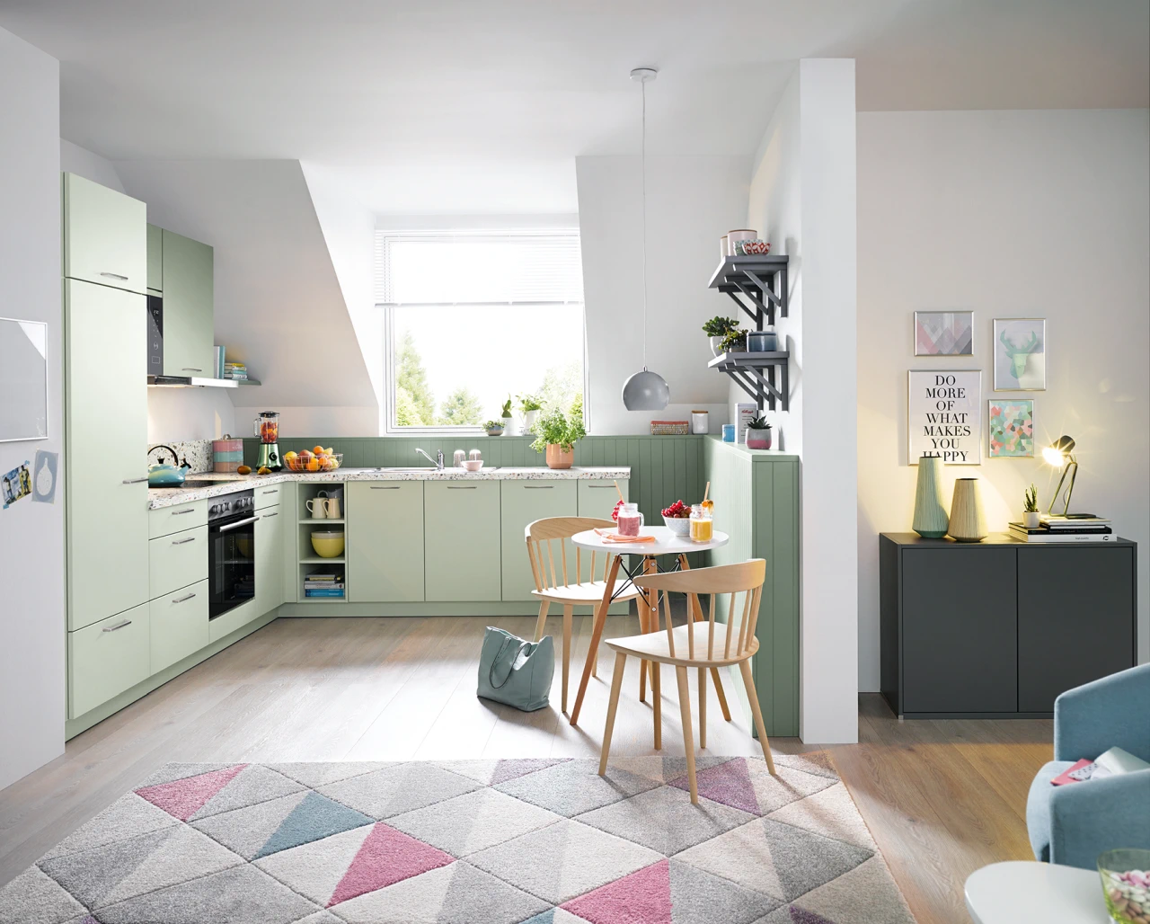 In dieser Küche vereinen sich Modernität und Funktionalität in perfekter Harmonie! Intelligente, platzsparende Stauraumlösungen werden mühelos mit lässiger Leichtigkeit kombiniert. Das Ergebnis ist eine gekonnte Verschmelzung von Kochen und Wohnen. Hier wird das Kochen zu einem Genuss, während die Küche zugleich als gemütlicher Treffpunkt für die ganze Familie dient. Mit ihrem zeitgemäßen Design und durchdachten Raumkonzept lässt diese Küche den Alltag zum Vergnügen werden und erfüllt alle Ansprüche an Ästhetik und Effizienz.