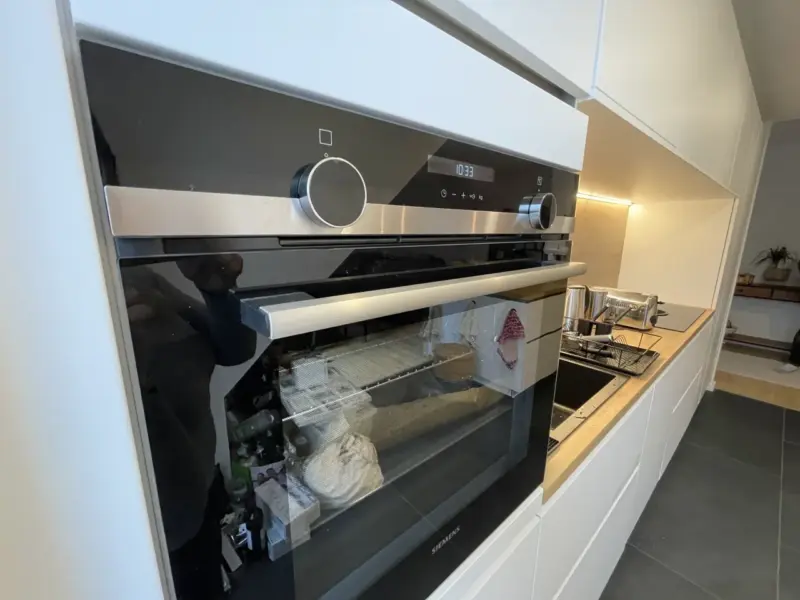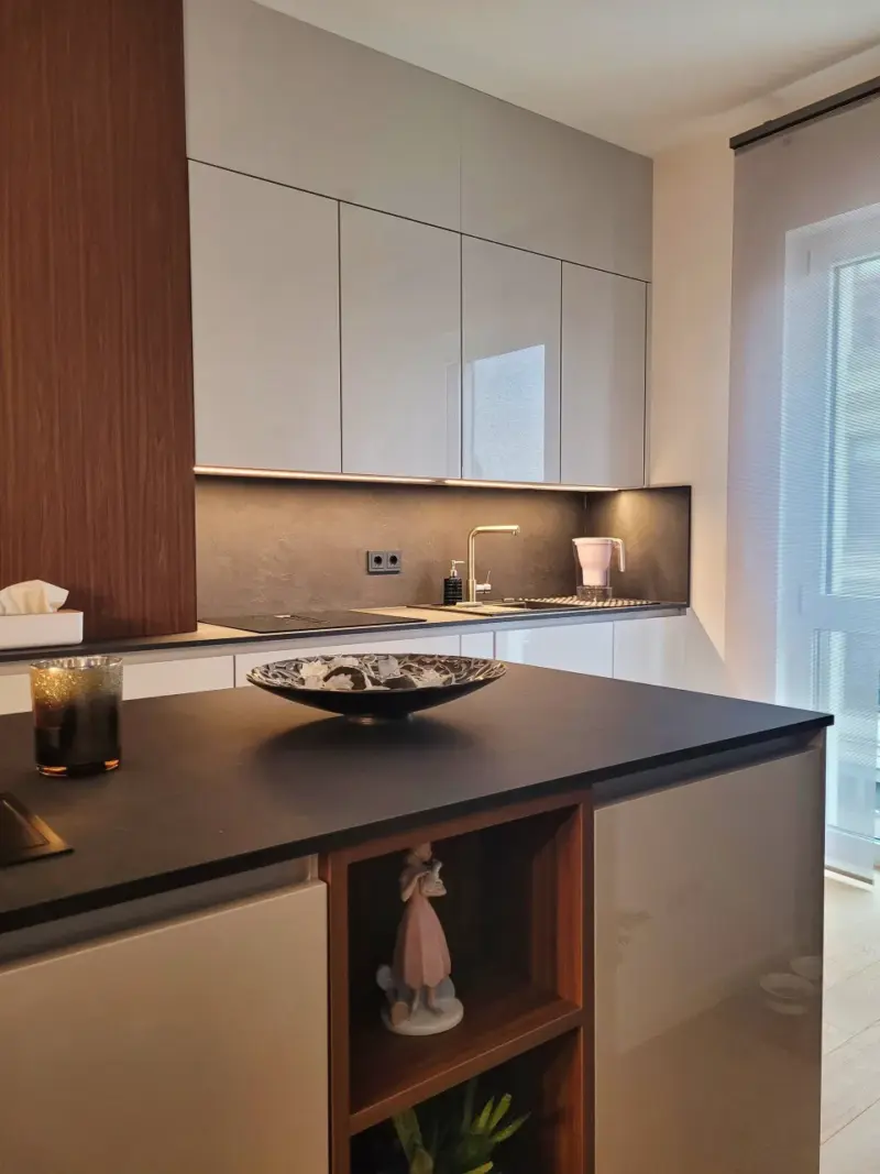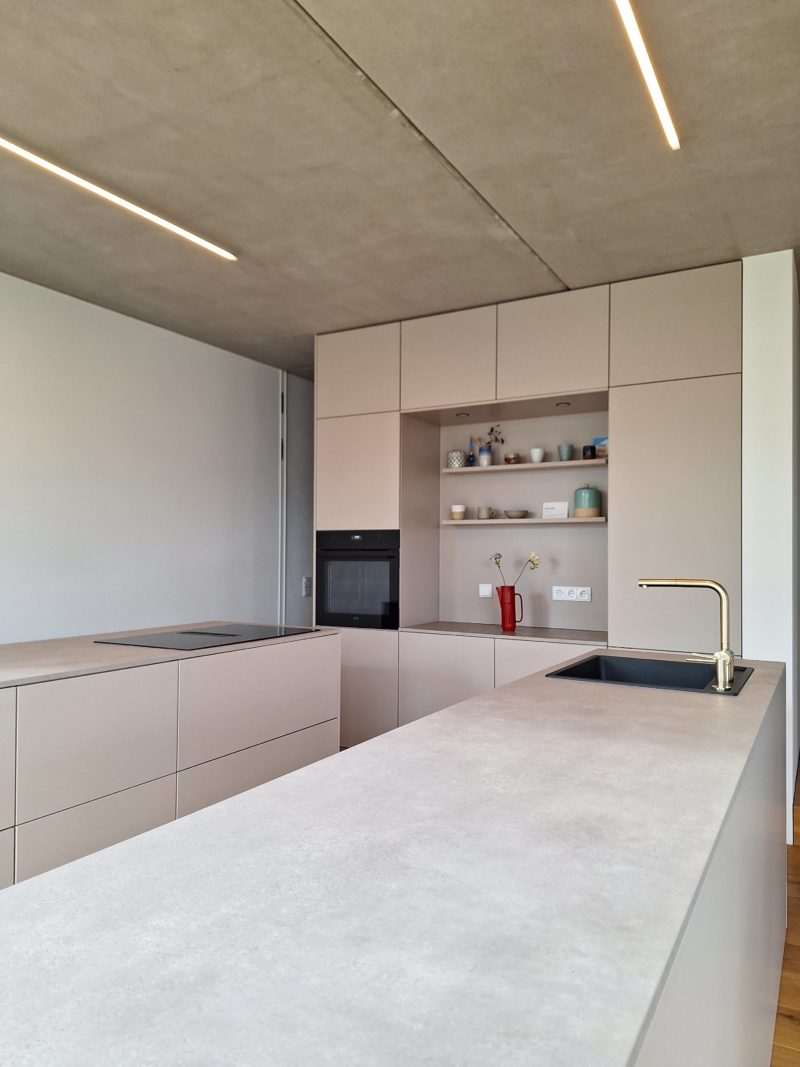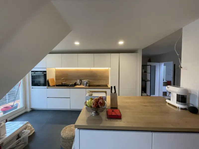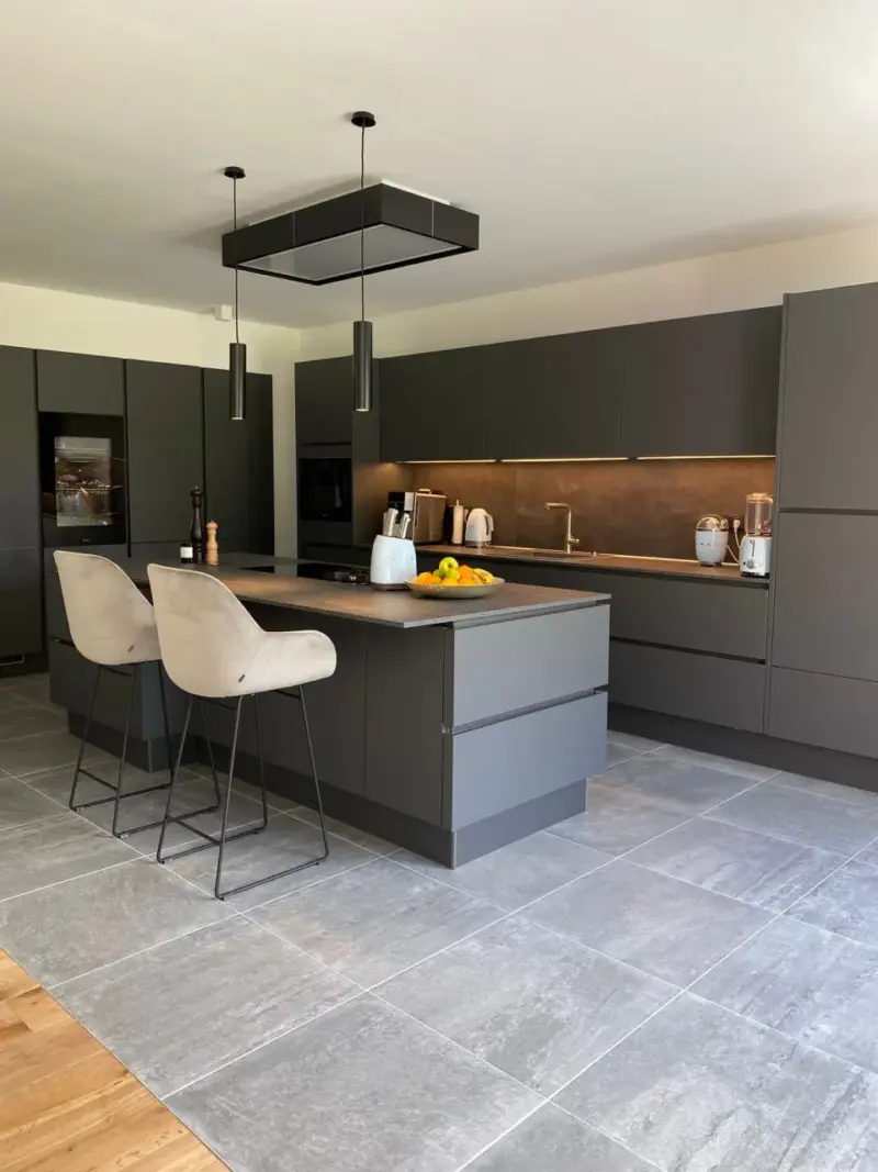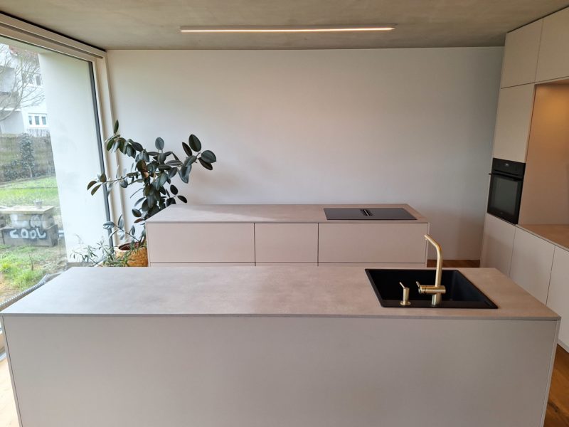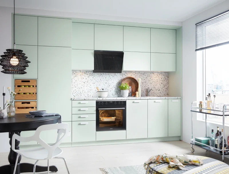 Wenn du nur eine besonders kleine Küche besitzt oder dich der Herausforderung stellen musst, nur ein sehr begrenztes Budget zur Verfügung zu haben, empfehle ich dir die Küchenzeile. Denn eine Küchenzeile bringt einige Vorteile mit sich und bietet dir die optimale Lösung für deine Challenge. Dieser Küchenblock ist eine sehr kompakte Lösung im Raum, die aber trotzdem alle wichtigen Elemente und Geräte wie Spüle, Herd, Backofen, Kühlschrank, Geschirrspüler und Arbeitsfläche vereint und sie auf einer Seite anordnet. Dank der Größe wird wertvoller Platz in deiner Küche gespart und der Rest des Raumes kann effizient für alles andere genutzt werden.