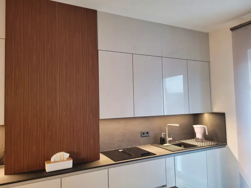 Trotzdem solltest du eine Küchenzeile mit ausreichend Stauraum und Arbeitsfläche planen. Besonders Einbauküchen, die in der Form einer Küchenzeile aufgebaut sind, neigen leider oft dazu, zu wenig Platz für alle Küchenutensilien zu bieten. So muss meist auch die Arbeitsfläche mit Elektrogeräten zugestellt werden. Um wertvollen Stauraum zu gewinnen, ist es deshalb ratsam, deine Küche mit Hängeschränken beziehungsweise Oberschränken und Unterschränken auszustatten.