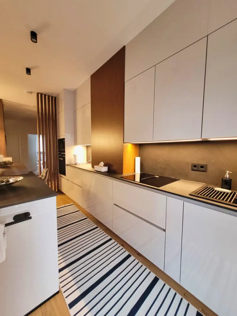 Außerdem sind Küchenzeilen im Gegensatz zu anderen Formen oft kostengünstiger. Dies macht sie vor allem als Einbauküche zu einer attraktiven Option, wenn du nur ein sehr begrenztes Budget hast oder eine preiswerte Küche suchst. Nichtsdestotrotz sind Küchenzeilen aber nicht nur kostengünstig planbar, sondern finden sich auch als Küchenblock im Luxussegment von Küchenanbietern wieder.