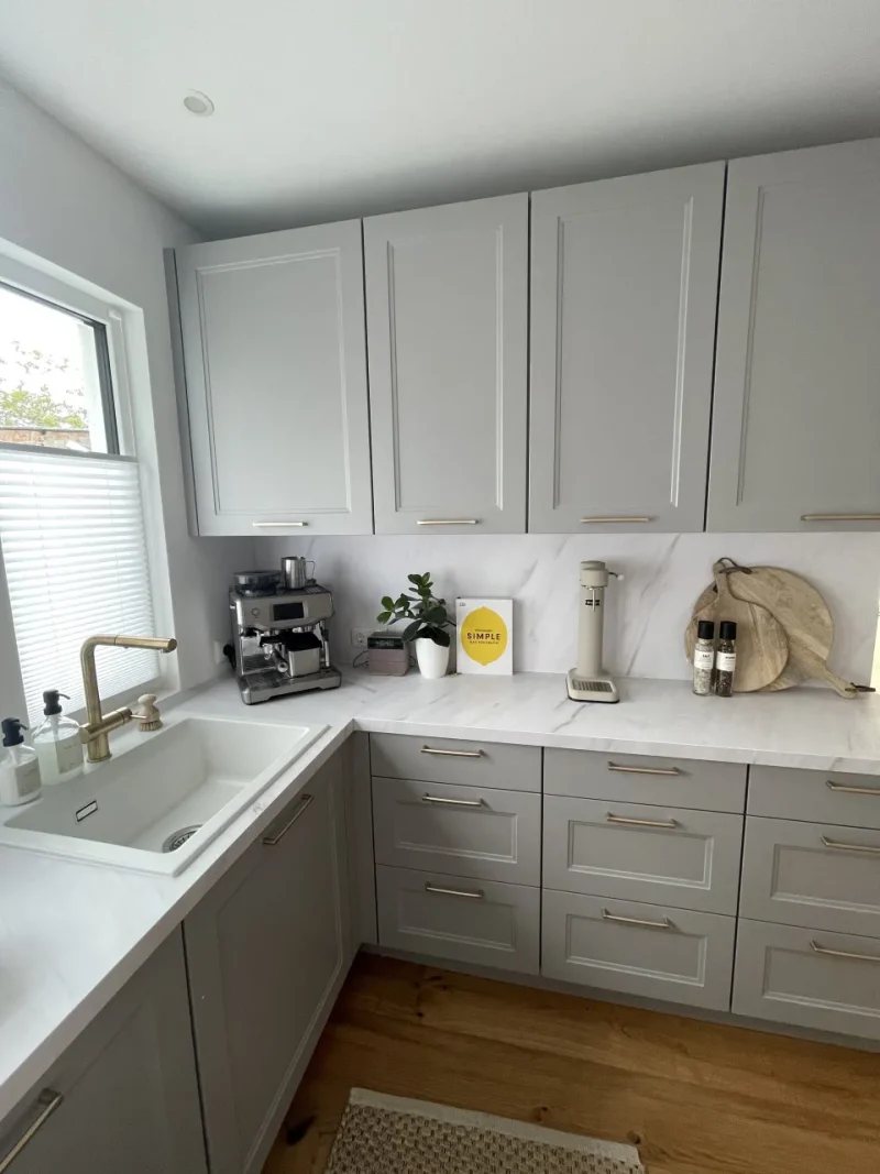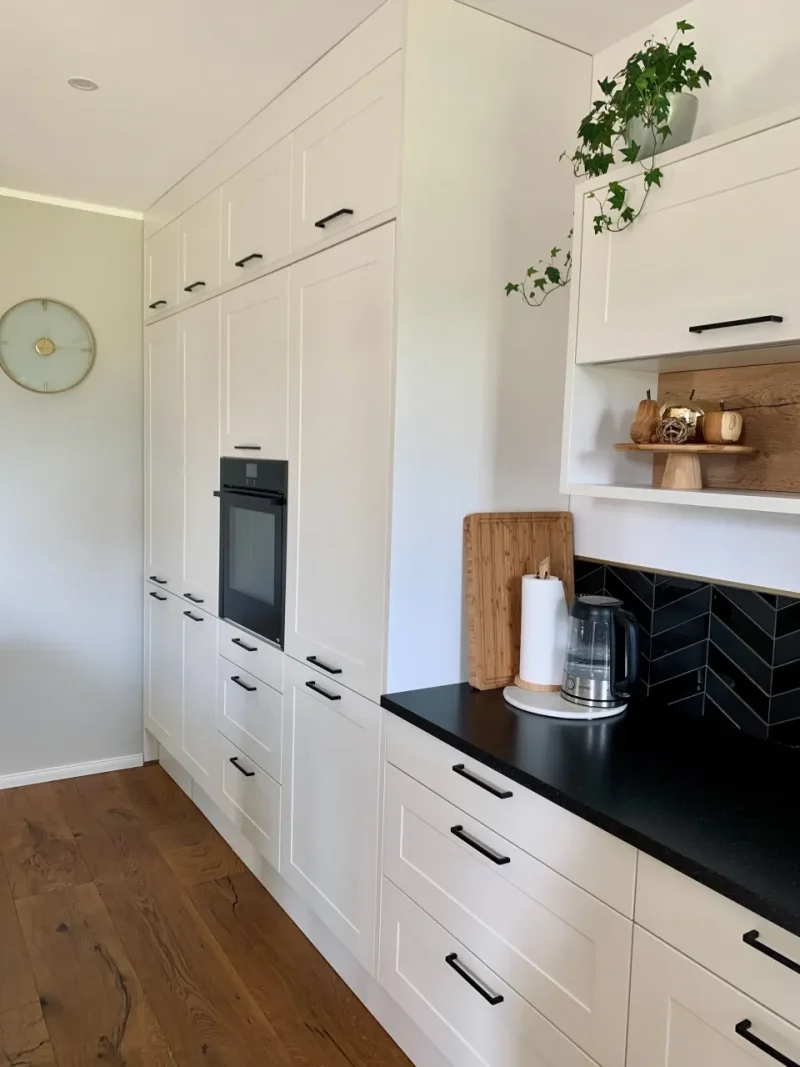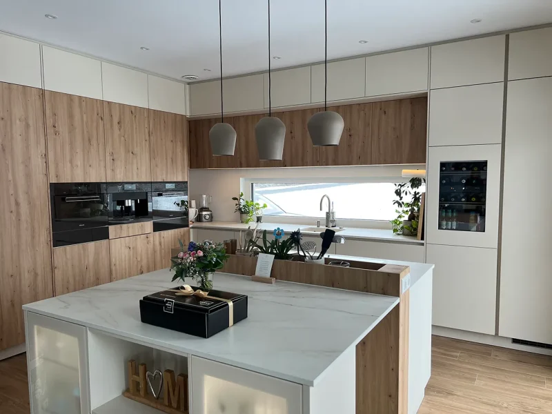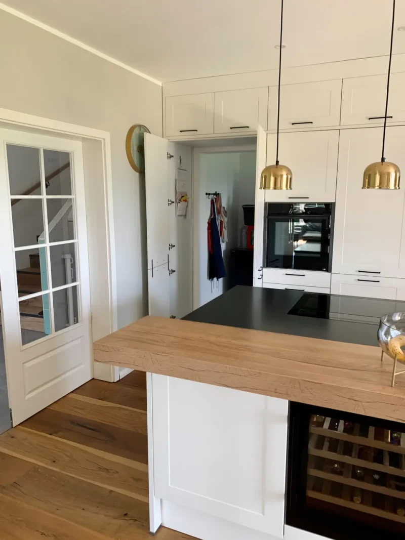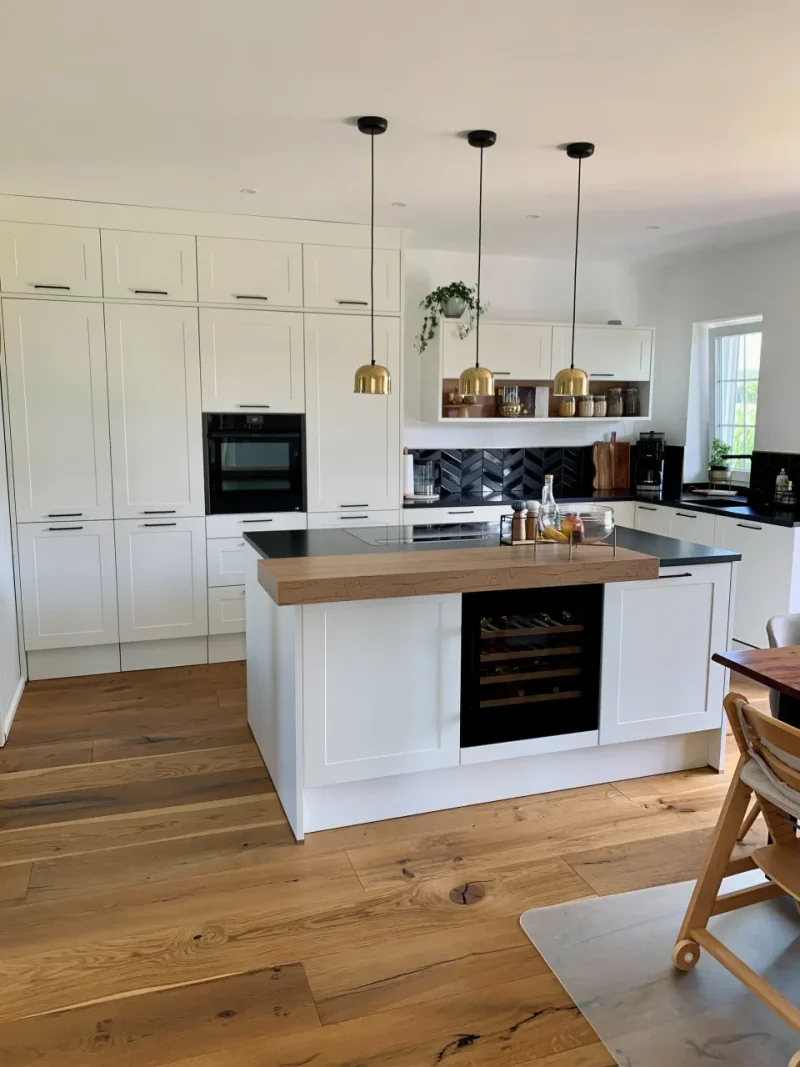 Wenn du einen eher kleinen bis mittelgroßen Raum mit deiner Küche füllen möchtest und clevere Stauraumlösungen gepaart mit kurzen Laufwegen suchst, kann ich dir die Küche in L-Form bei deiner Planung ans Herz legen. Im Gegensatz zur klassischen Küchenzeile, die oft als Basisküche fungiert, findest du bei der L-Küche noch eine angesetzte Ecke: Sie erstreckt sich über ein oder zwei Wände, je nachdem, wo Du die Winkelküche aufstellst. Geeignet ist diese Küchenform besonders, wenn dein vorhandener Platz optimal ausgenutzt werden soll. In den meisten Fällen ist eine Seite der Küche kürzer, sodass ihre Form tatsächlich wie ein L aussieht. Allerdings können auch beide Seiten gleich lang sein, wenn der Platz dafür bei Dir ausreicht.